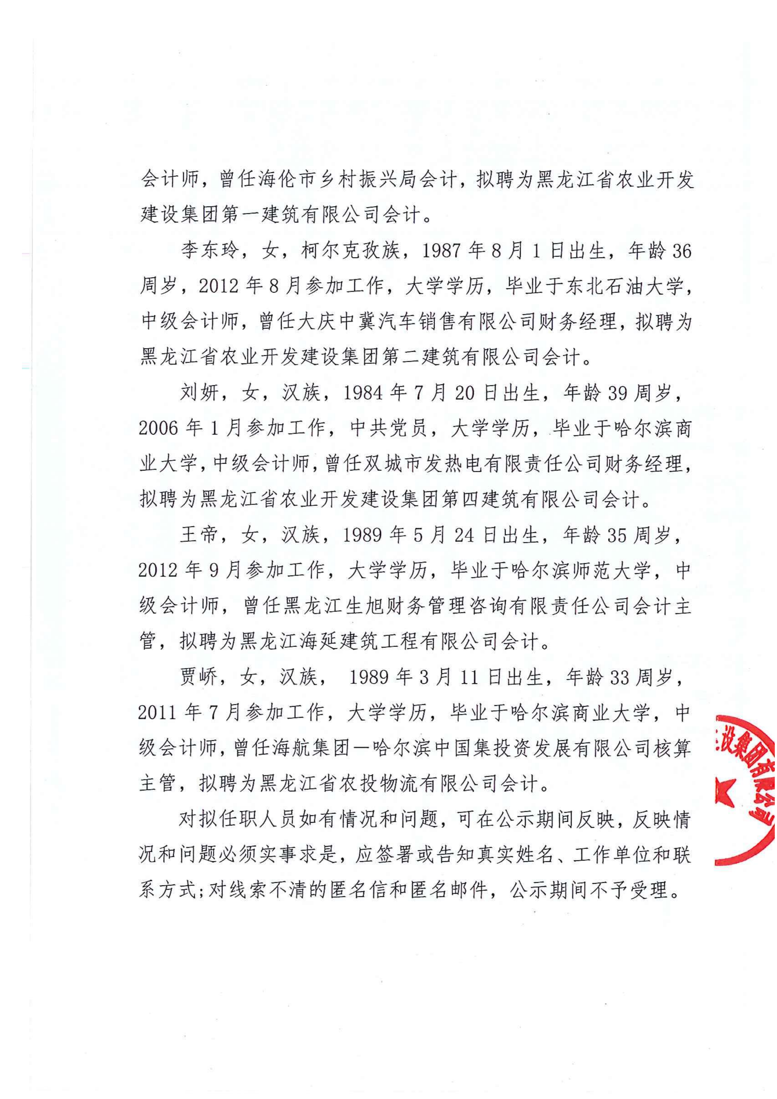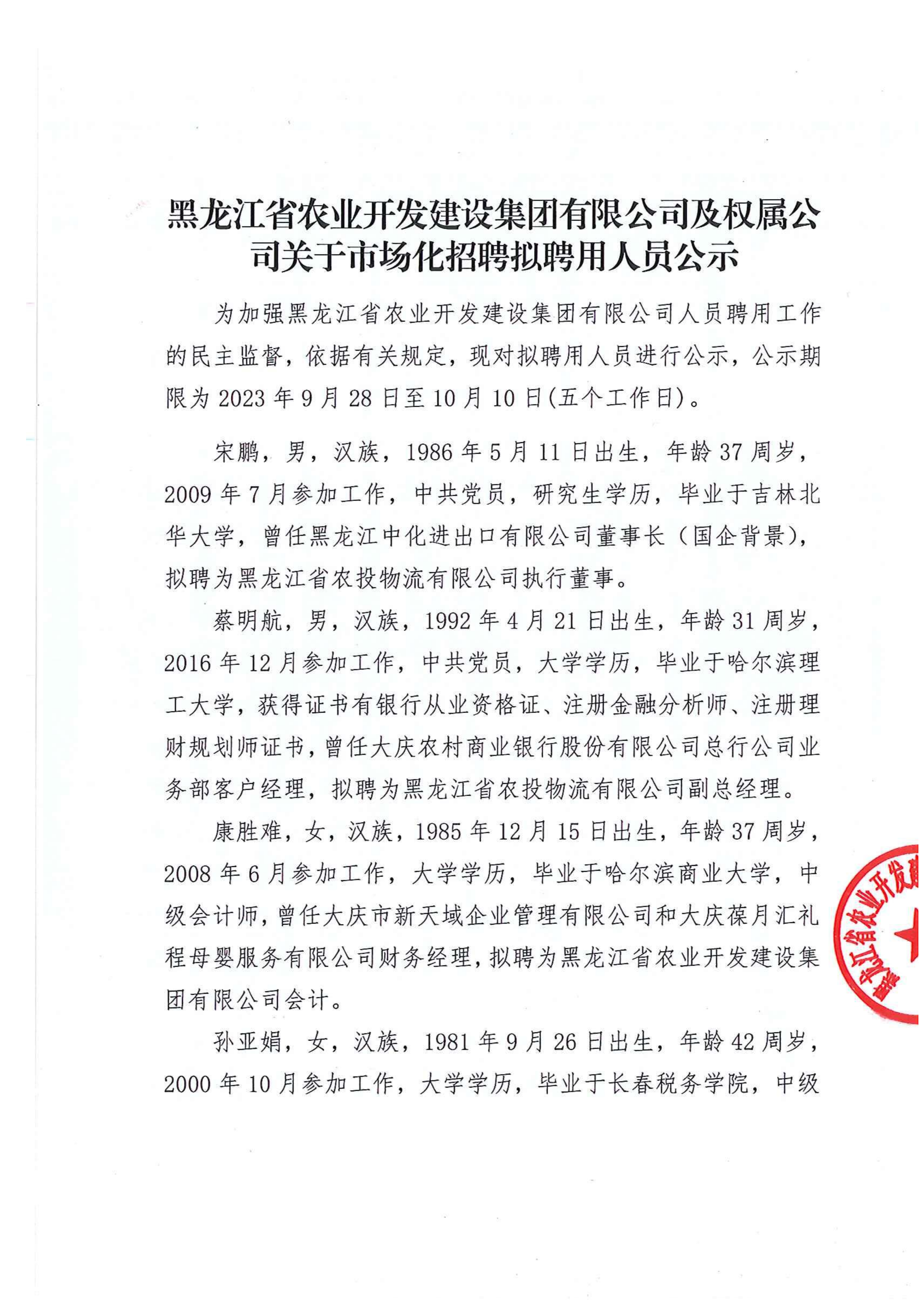 黑龍江省農(nóng)業(yè)開(kāi)發(fā)建設(shè)集團(tuán)有限公司及權(quán)屬公司關(guān)于市場(chǎng)化招聘擬聘用人員公示