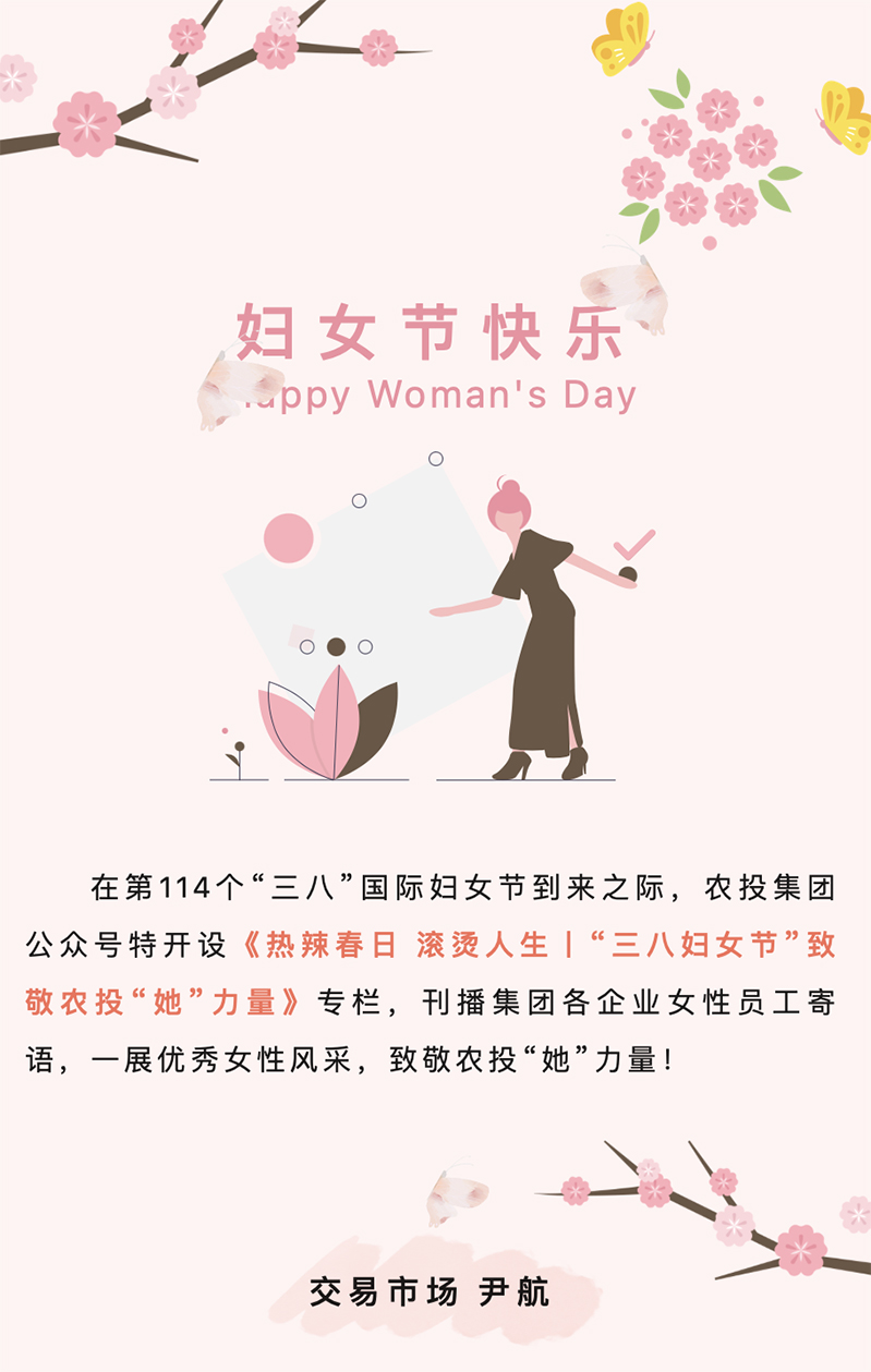 又逢三八婦女節(jié),一歲一禮,一寸歡喜。女人如花,花開如夢,生活不必很驚艷,有愛的人相伴,有愛的事可做,要有自己的精彩,做個自己喜歡的姑娘,不迎合,不媚俗,追逐自己的夢,不需要憑借誰的光,成為自己的太陽,化最美的妝,做自己的女王,遇見美好的自己。在此希望女神們好好擁抱一下自己,永遠(yuǎn)幸福安康,節(jié)日快樂!