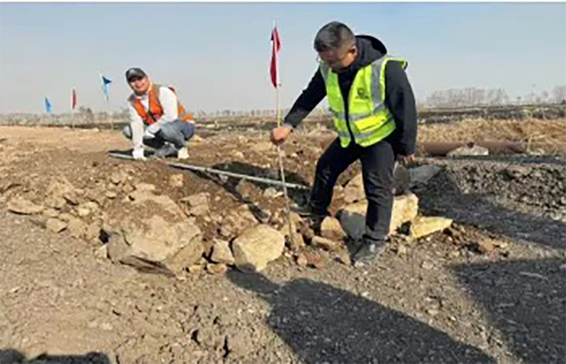 在黑龍江省海倫市“五好兩宜和美鄉(xiāng)村”項(xiàng)目中開(kāi)展排水溝砌筑施工
