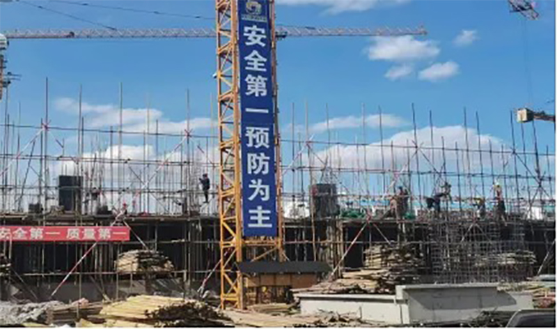 在海倫市棚改項(xiàng)目(海倫市紫金公館住宅小區(qū))工地施工現(xiàn)場(chǎng)開(kāi)展搭建工作