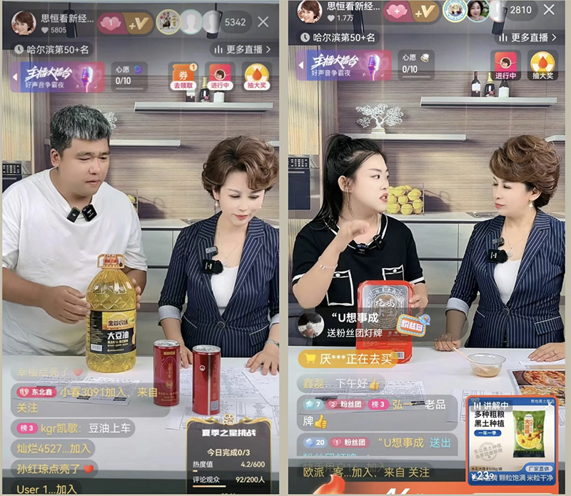 直播人氣爆棚,粉絲朋友輪番咨詢,了解“黑土優(yōu)品”相關(guān)知識(shí),經(jīng)主播介紹后,多款產(chǎn)品被搶購一空。銷量第一的產(chǎn)品是來自“金谷農(nóng)場”的350克罐裝五常大米,原價(jià)28.5元一罐的大米,直播間僅需9.9元。近5000件罐裝五常大米,短時(shí)間內(nèi)售罄?!敖鸸绒r(nóng)場”的五常大米(5kg裝)、大豆油、玉米油,“九三”的非轉(zhuǎn)基因精榨大豆油、佳倍智選核桃油,“北大荒”的小米、全麥粉、高粱白酒,“秋林”的紅腸、格瓦斯,“和糧農(nóng)業(yè)”的大碴粥、綠豆,“永富”的有機(jī)秋木耳、有機(jī)黃蘑、有機(jī)銀耳、濃縮樺樹汁,“十六膳”的黑豬肉烤腸、梨汁冷面,“裕昌”燒雞,“超越”龍須酥、高粱飴軟糖,“八旗”干豆皮,“勝武”綠豆糕,“永?!辟人勺尤实榷汲蔀橹辈ラg明星產(chǎn)品。
