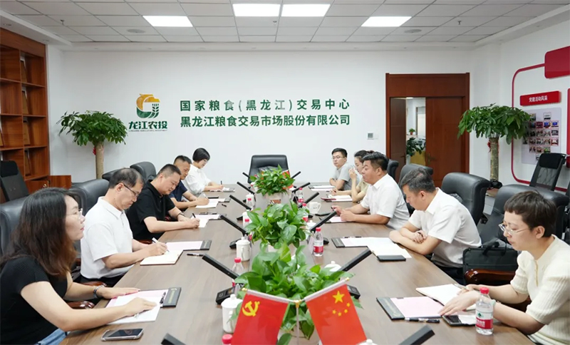 8月29日,河南省儲備糧集團管理有限公司總經(jīng)理助理,河省儲備糧輪換管理有限公司黨支部書記、董事長韋遠一行到黑龍江省農(nóng)業(yè)投資集團有限公司(以下簡稱農(nóng)投集團)參觀調(diào)研。黑龍江省糧食和物資儲備局調(diào)控處科長相野;農(nóng)投集團總經(jīng)理助理,交易市場黨支部書記、董事長魏志偉參加座談。