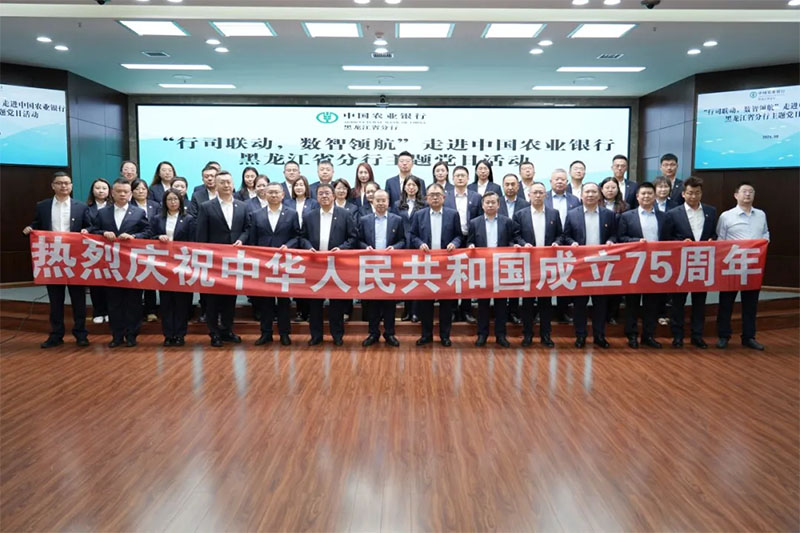 9月27日,農(nóng)投集團(tuán)總會(huì)計(jì)師魏成林一行赴中國農(nóng)業(yè)銀行黑龍江省分行開展“行司聯(lián)動(dòng)·數(shù)智領(lǐng)航”慶祝中華人民共和國成立75周年主題黨日活動(dòng)。中國農(nóng)業(yè)銀行黑龍江省分行黨委委員、副行長(zhǎng)兼哈爾濱分行黨委書記、行長(zhǎng)孟喆參加活動(dòng)。