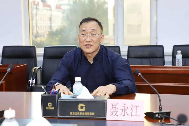 郝雪巖對聶永江一行的到來表示歡迎,并簡要介紹了農(nóng)投集團發(fā)展現(xiàn)狀。郝雪巖表示,農(nóng)投集團主要作為黑龍江省農(nóng)業(yè)產(chǎn)業(yè)投資服務平臺,是建設“四個農(nóng)業(yè)”的重要載體,聚焦涉農(nóng)涉糧主業(yè),承擔“維護國家糧食安全壓艙石,爭當全國農(nóng)業(yè)現(xiàn)代化建設排頭兵”的使命。希望雙方能結合各自資源優(yōu)勢和產(chǎn)業(yè)特點,進一步加深交流,特別是圍繞“黑土優(yōu)品”下江南等活動,共同探索“黑土優(yōu)品”進高校的市場拓展路徑與合作模式,推動雙方高質量發(fā)展。