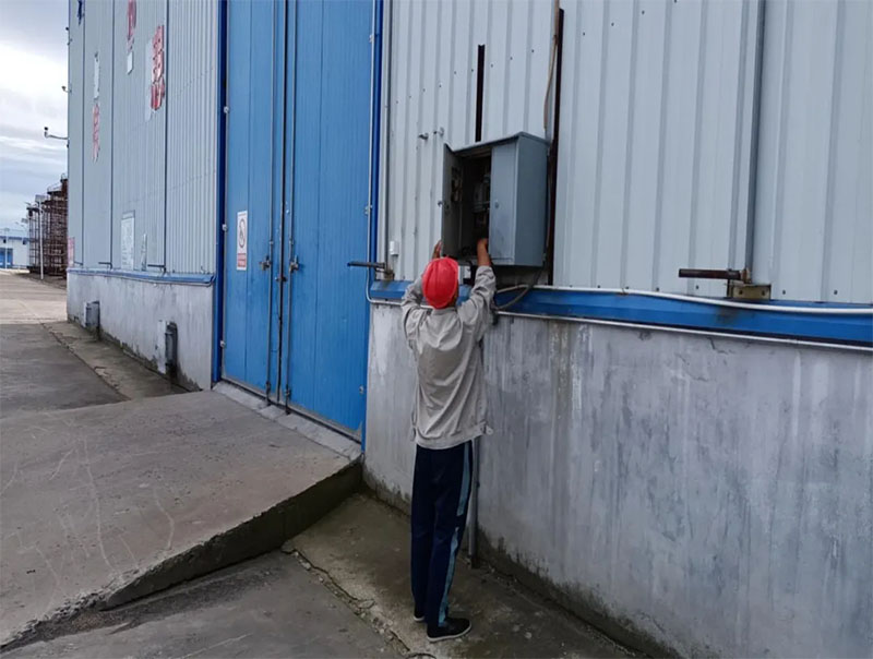 錦稻公司電工師傅認(rèn)真查看電閘箱