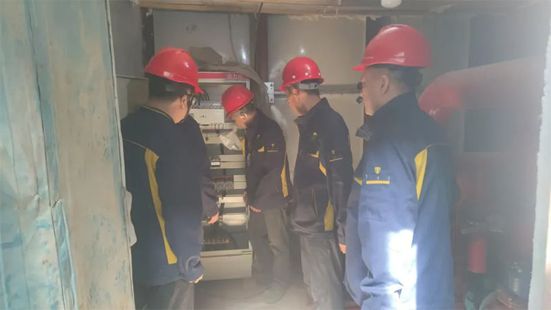 盛寶金谷工作人員檢查消防水泵和配電設(shè)施