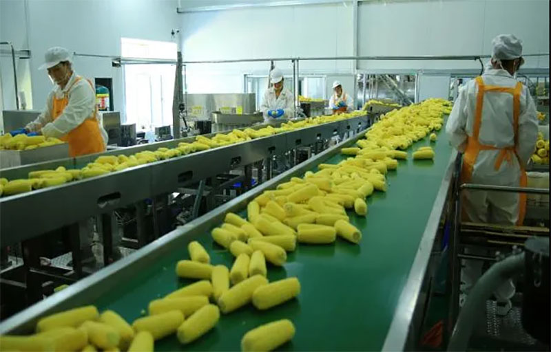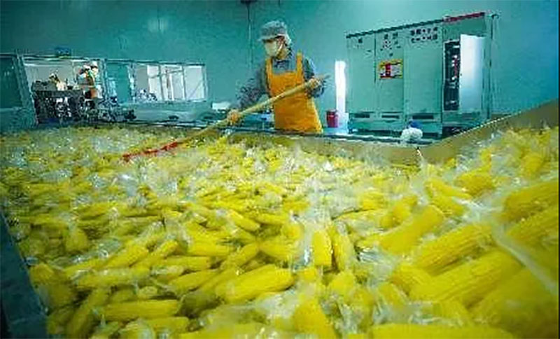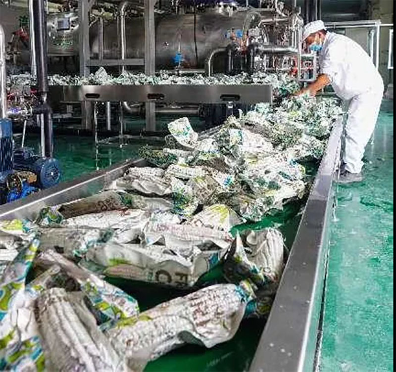 國(guó)慶期間,因?yàn)檗r(nóng)產(chǎn)品行業(yè)的特殊性,龍疆金谷人無(wú)法休息,工廠里,新鮮采摘的甜玉米堆滿操作間,生產(chǎn)車間滿是鮮甜玉米誘人的甜香,工人們穿著統(tǒng)一工裝,在各項(xiàng)加工設(shè)備前進(jìn)行著操作。鮮玉米通過(guò)機(jī)械傳送帶進(jìn)入加工流水線,在經(jīng)過(guò)脫皮、分揀、蒸煮、消毒、清洗等多道工序后最終成為待售的鮮玉米。