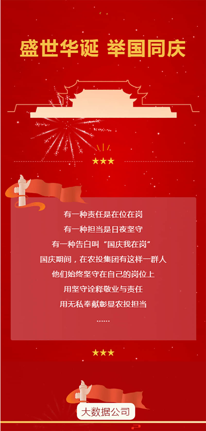 金秋十月,丹桂飄香。國慶期間,大數(shù)據(jù)公司全體員工深知肩上的責任與擔當,秉持 “專業(yè)服務(wù),創(chuàng)新引領(lǐng),科技賦能” 的理念,隨時待命、聞令而動,以更加昂揚的斗志、更加敬業(yè)的精神、更加高效的行動,不斷推動科技與農(nóng)業(yè)的深度融合,為實現(xiàn)鄉(xiāng)村振興、農(nóng)業(yè)現(xiàn)代化的宏偉目標貢獻自己的力量。