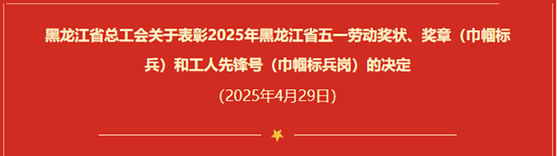 農(nóng)投集團(tuán)榮獲2025年黑龍江省五一勞動(dòng)獎(jiǎng)狀和工人先鋒號(hào)兩項(xiàng)殊榮